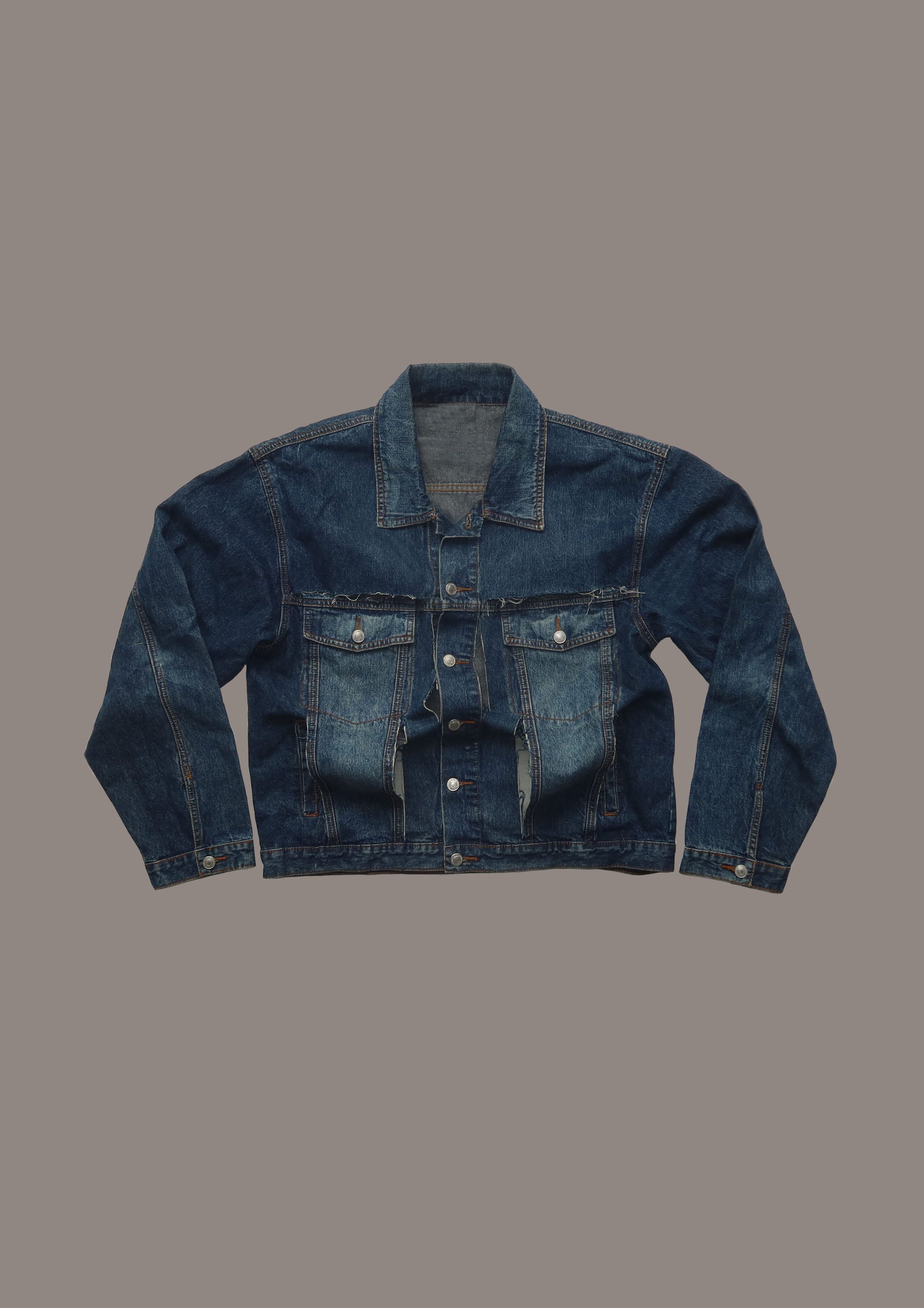 Veste en jeans avec découpes sur le devant et le dos et manches
